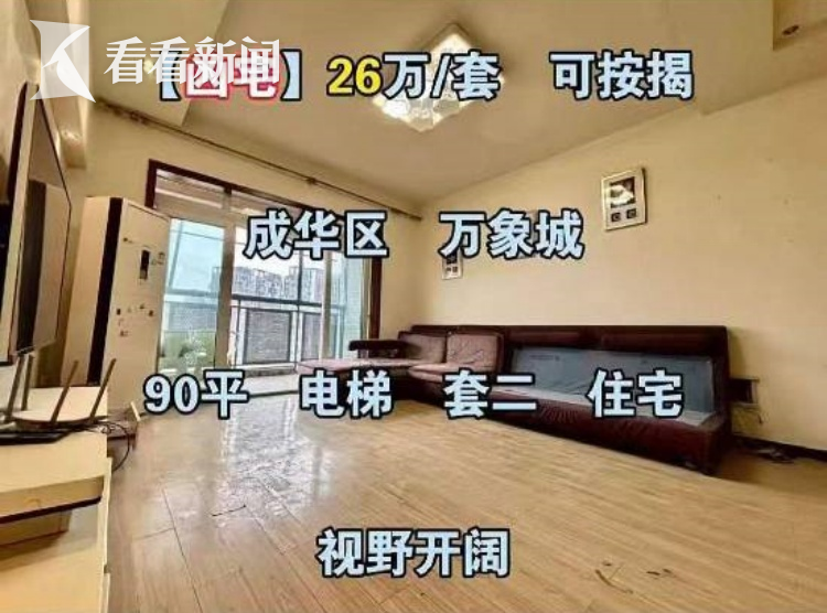 有宣称“特价房捡漏”的网络账号在社交平台发帖,一套位于成都市成华区双庆路附近将近100平米的房屋,被以“凶宅”的名义标价26.6万元销售,一时间,引来广泛关注。