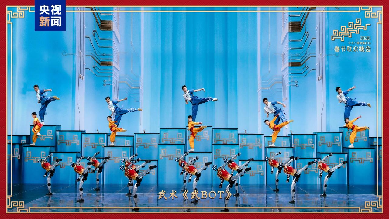 人形机器人再登春晚舞台,在《武BOT》中化身“武林高手”,一招刚劲如松,一式灵动如风,中国智造的硬核实力与中华武术的千年神韵相互交融。来自海峡两岸和港澳的表演者陈小春、言承旭、罗嘉豪、易烊千玺联袂演唱《智造未来》,唱出未来已来、科技赋能美好生活的万千精彩。