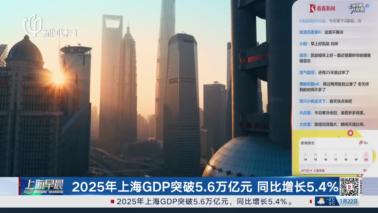 2025年上海GDP突破5.6万亿元 同比增长5.4% 三大先导产业规模突破2万亿元