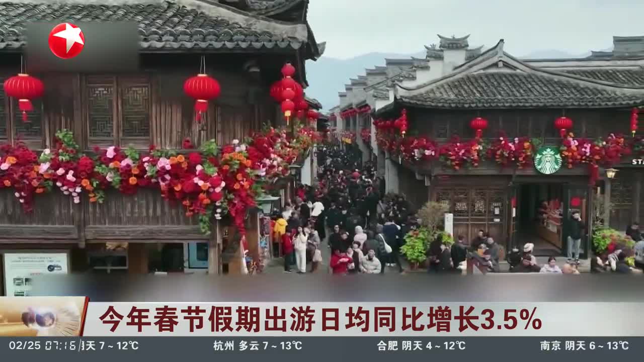 今年春节假期出游日均同比增长3.5%