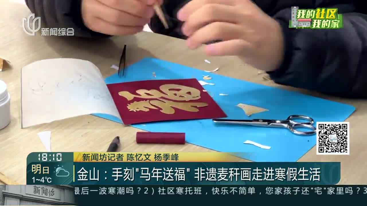 金山:手刻“马年送福”非遗麦秆画走进寒假生活