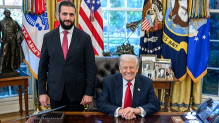 当地时间11月9日,叙利亚政权领导人艾哈迈德·沙拉抵达美国开启正式访问之行,并于当地时间10日在白宫会见美国总统特朗普。这是自1946年叙利亚独立以来,其领导人首次到访华盛顿。在此之前,10月15日,沙拉到访俄罗斯,并会见俄总统普京。会谈中,普京重申了叙利亚与俄罗斯的友好和牢固关系。沙拉则回应称,叙方有意重启与俄罗斯的关系。
