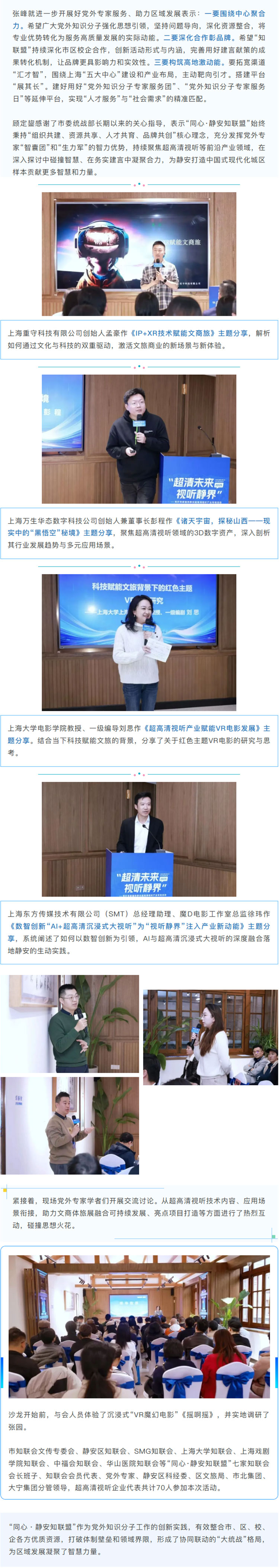 12月10日,“超清未来 视听静界”党外专家服务静安超高清视听产业专场活动暨同心·静安知联盟沙龙活动在静安区张园举办。市委统战部副部长张峰,静安区委常委、统战部部长顾定鋆,上海市知联会副会长、静安区知联会会长崔华平,复旦上医知联会会长陈澍出席活动。