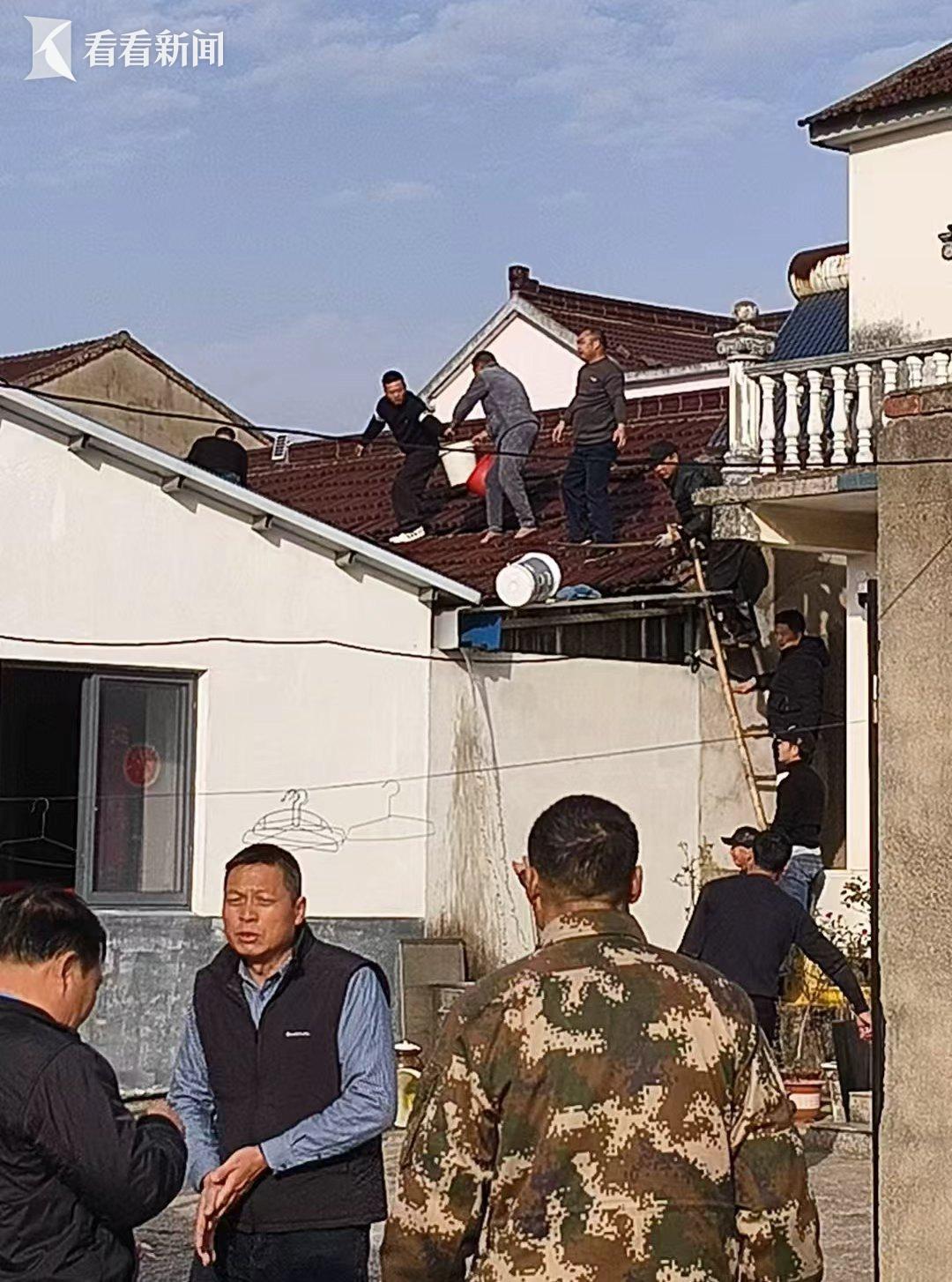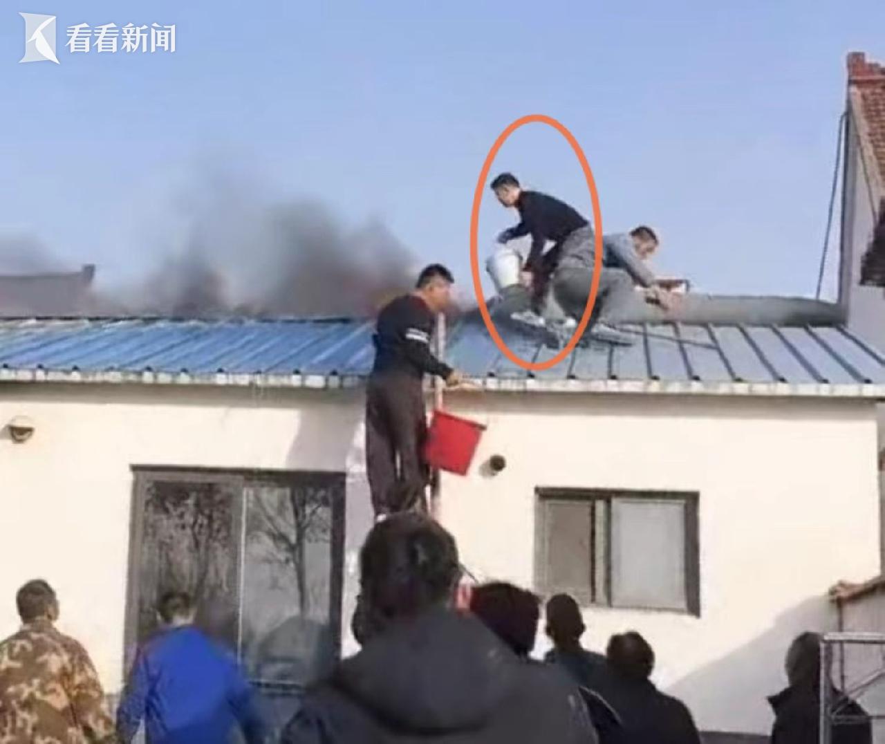 因现场缺少水枪、水带和消火栓,他就地取材,组织村民用水桶拎水,通过梯子递给房顶上的他,一桶桶浇向起火点。1桶、2桶、3桶……经过众人的不懈努力,过道下方的明火很快被扑灭。