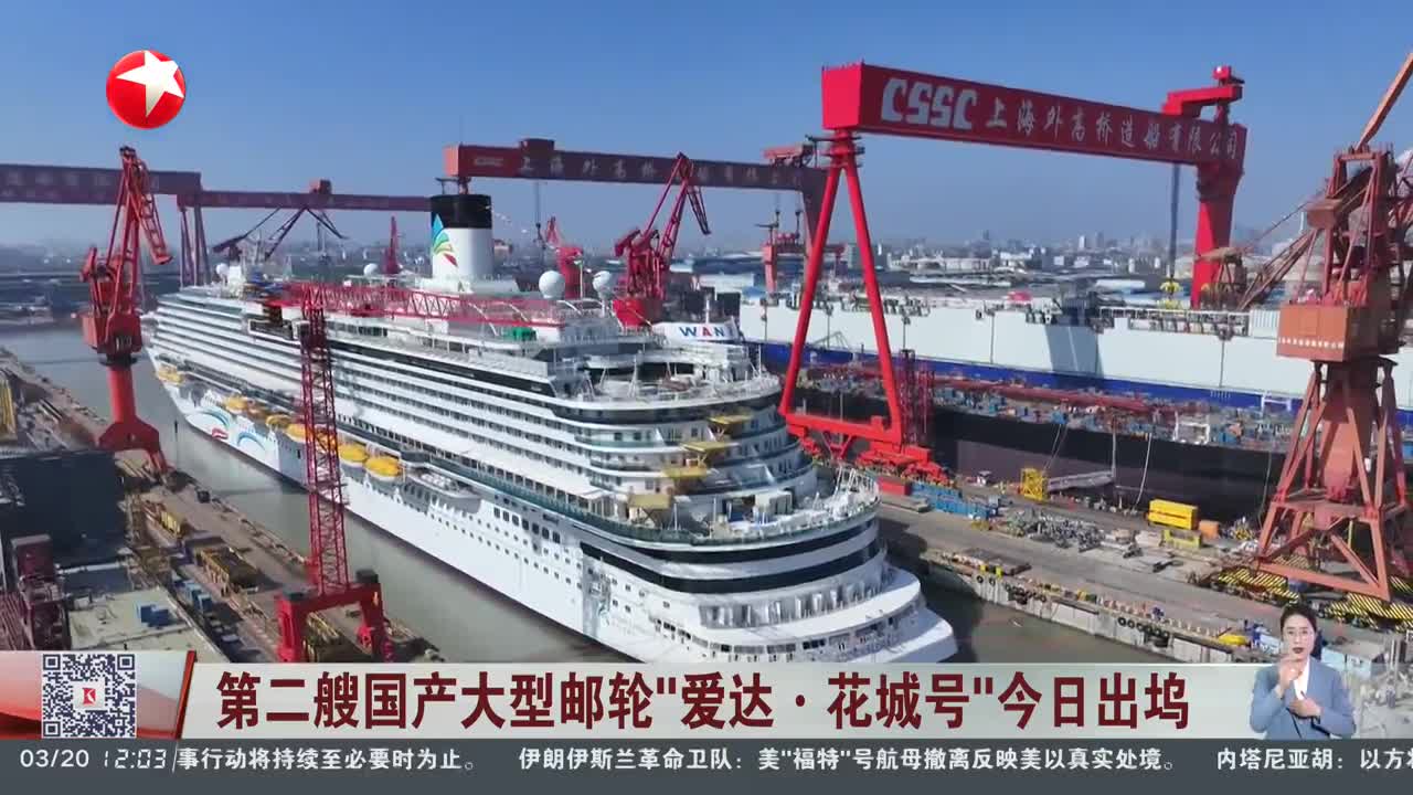 第二艘国产大型邮轮“爱达·花城号”今日出坞