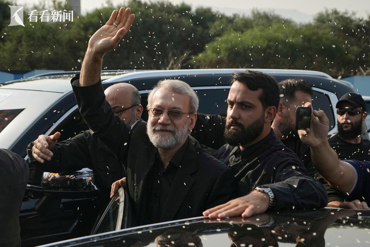 2025年8月13日,黎巴嫩贝鲁特拉菲克·哈里里国际机场,当地群众向拉里贾尼抛撒大米表示欢迎。