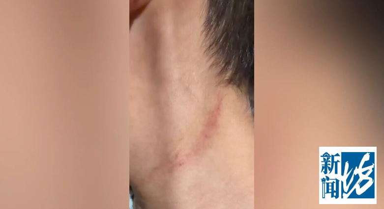 医生就一直在催我,说你们快点,他说你要看吗,不看,你们就走,我不给你们看。我儿子有点害怕,然后医生就忽然不知道为什么一下子情绪上来,直接掐住我儿子的脖子,右手拿鼻腔镜的探测针,这个手压着,啪啪两下,这是我亲眼看到的,旁边还有一个护士也看到了。