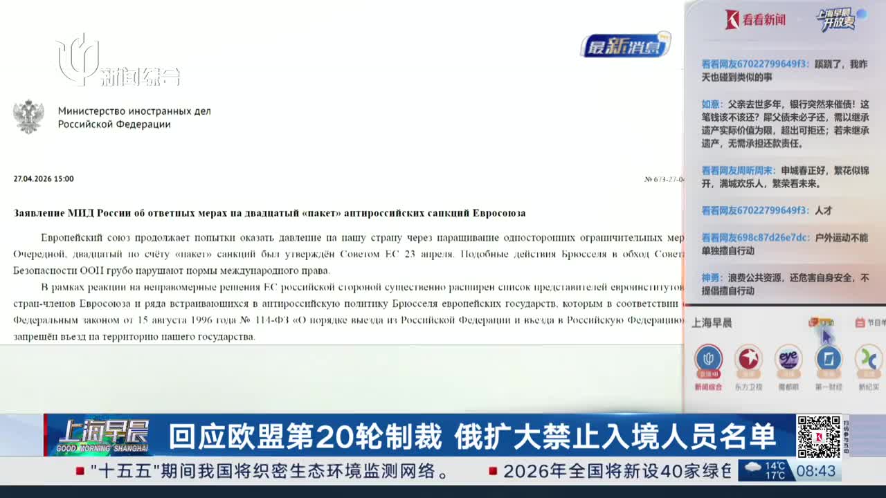 回应欧盟第20轮制裁 俄扩大禁止入境人员名单
