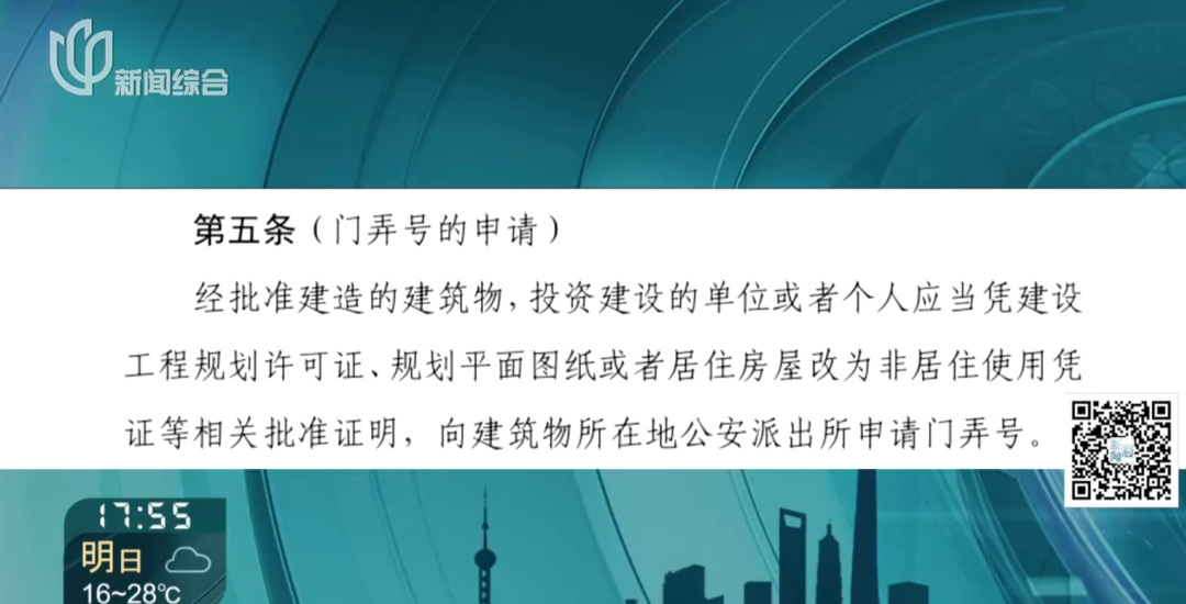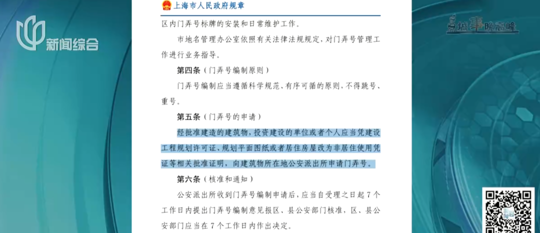 记者查询后发现,按照《上海市门弄号管理办法》,经批准建造的建筑物,投资建设的单位或个人应凭建设工程规划许可证、规划平面图纸 或其他批准文件,向建筑物所在地公安派出所申请门弄号。即只要是合法建筑,就应该申请专属门牌号。