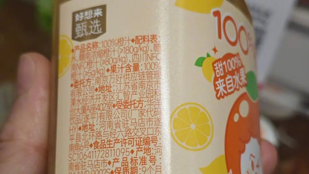 近期,有消费者质疑:好想来甄选100%果汁宣称“甜100%来自水果”,配料表上排在第一位的却是水。