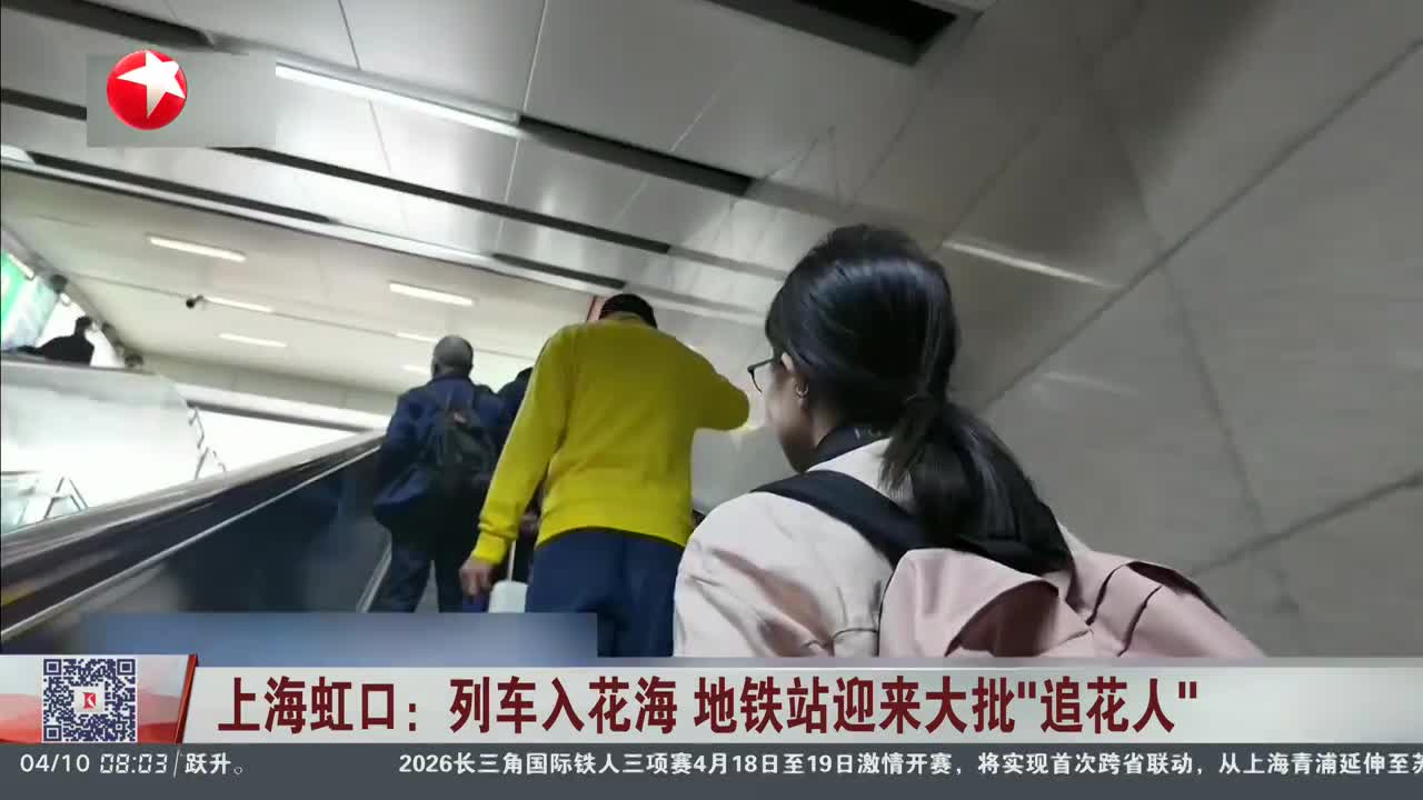 上海虹口:列车入花海 地铁站迎来大批“追花人”