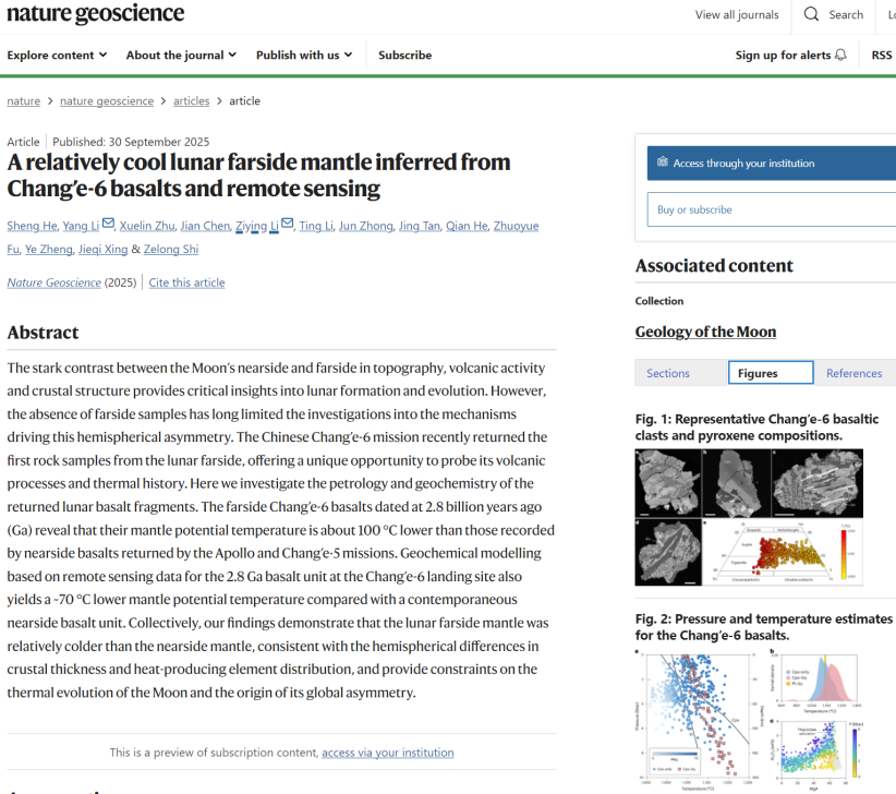 这一发现进一步深化了人类对月球“二分性”现象的认识,为月球正面与月球背面的月幔温度差异提供了岩石学与地球化学等科学依据,为月球演化和“二分性”特征研究提供了关键科学数据。