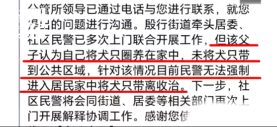 王先生家也是比较特殊的,家里是一户多残,居委每年过节包括在小区里经常会问到进行关心,特别是过年的时候。对养狗的问题我们居委会也是多次上门进行沟通,宣传政策进行劝导的。
