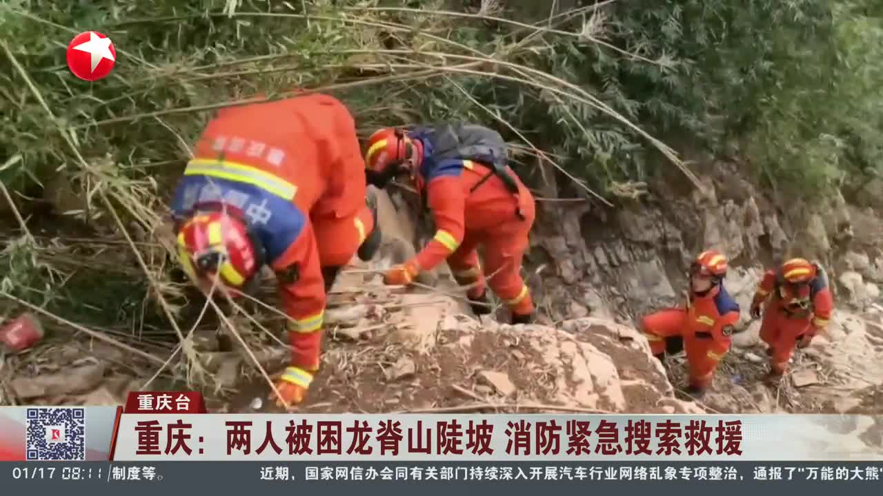 重庆:两人被困龙脊山陡坡 消防紧急搜索救援
