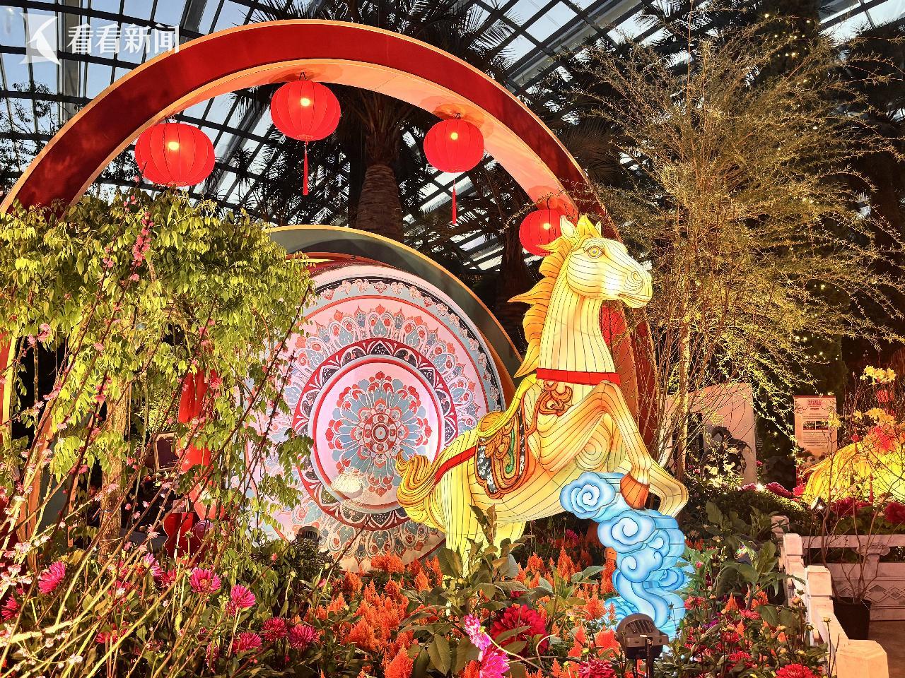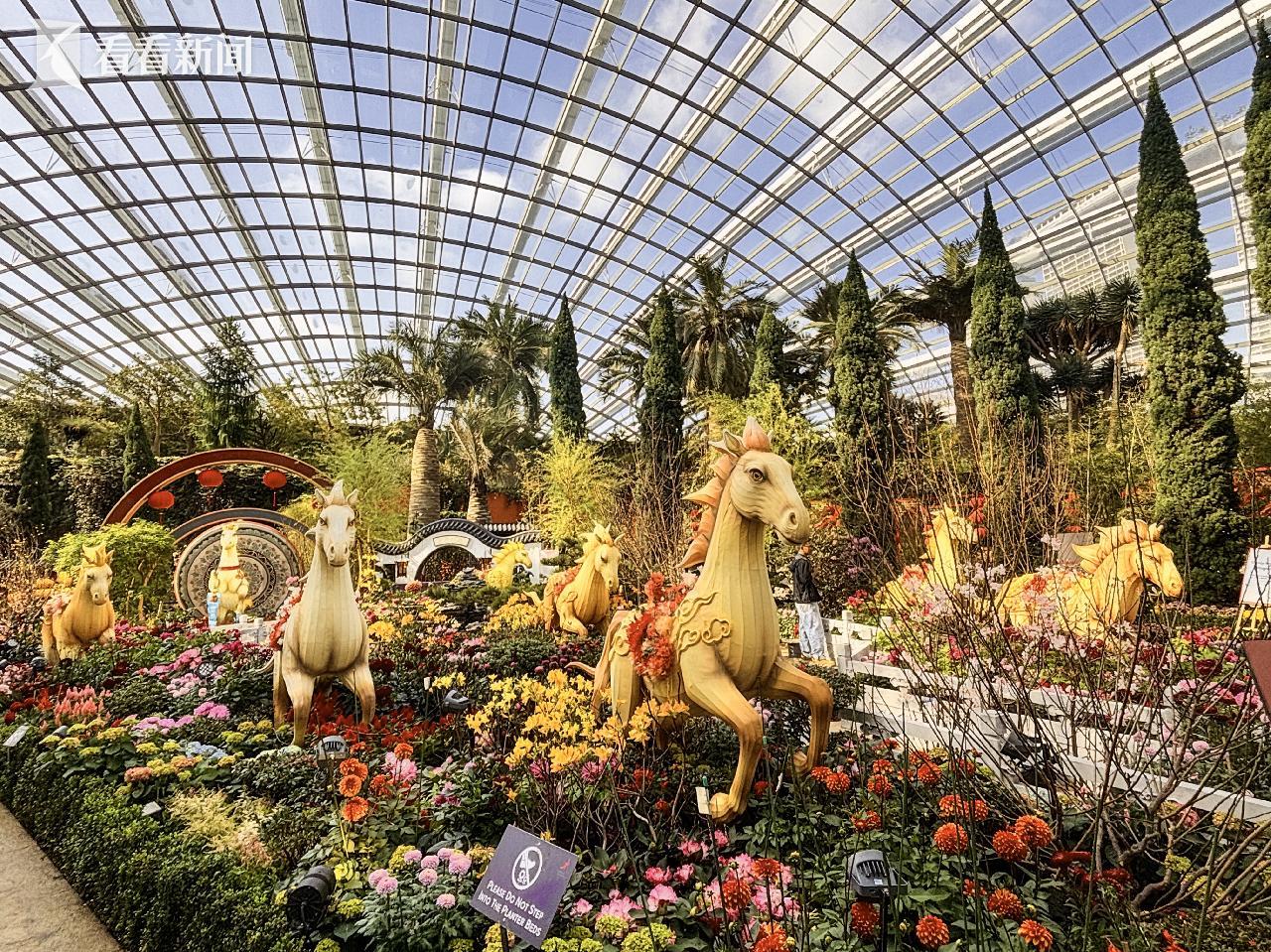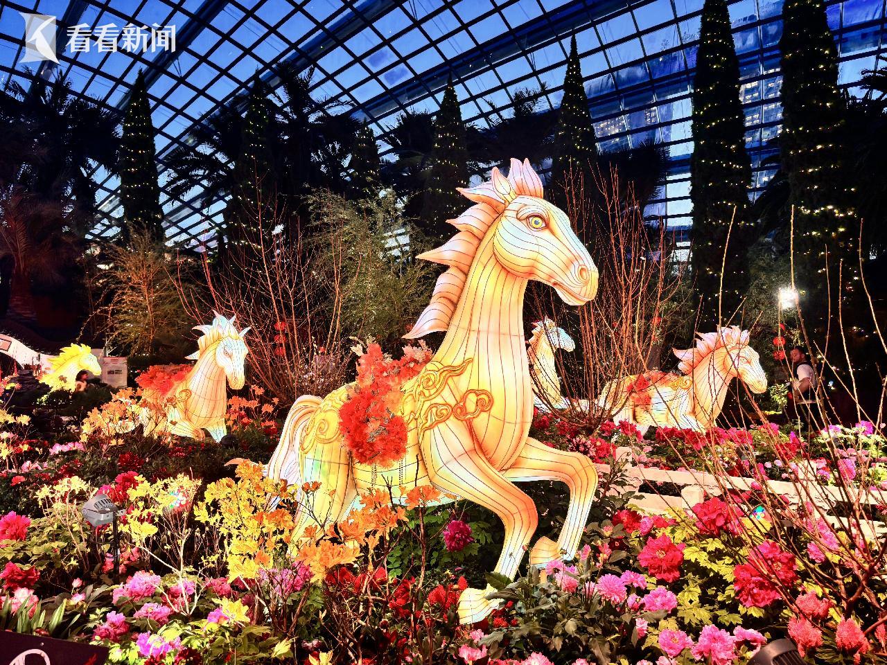 设计团队上海建工园林集团告诉记者:在新年启幕的时刻,他们在狮城以“花马献瑞”为主题,联手新加坡滨海湾花园共同打造了这场标志性的农历马年春节花展《春花盛开之骏马奔腾》(Spring Blossoms: Gallop into Prosperity)。