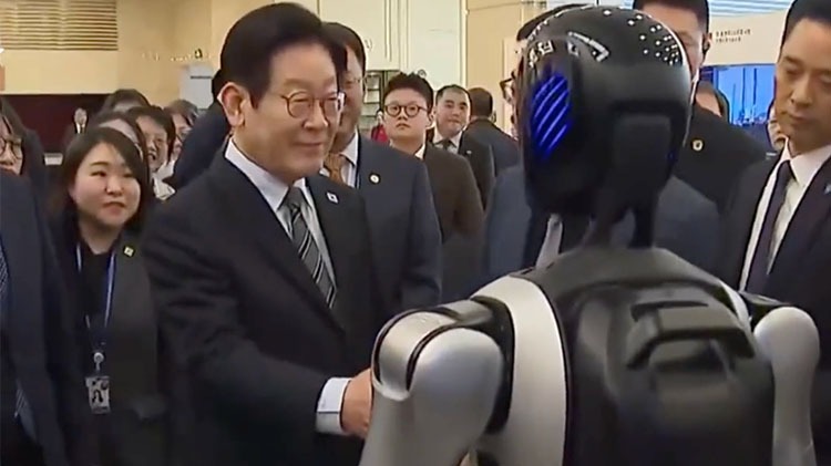 智元机器人“上大分” 与李在明握手还学会抢答了