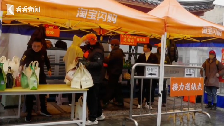和以往的“一人一车送到底”相比效率能提高多少,我们通过跟拍记录下了取餐过程。