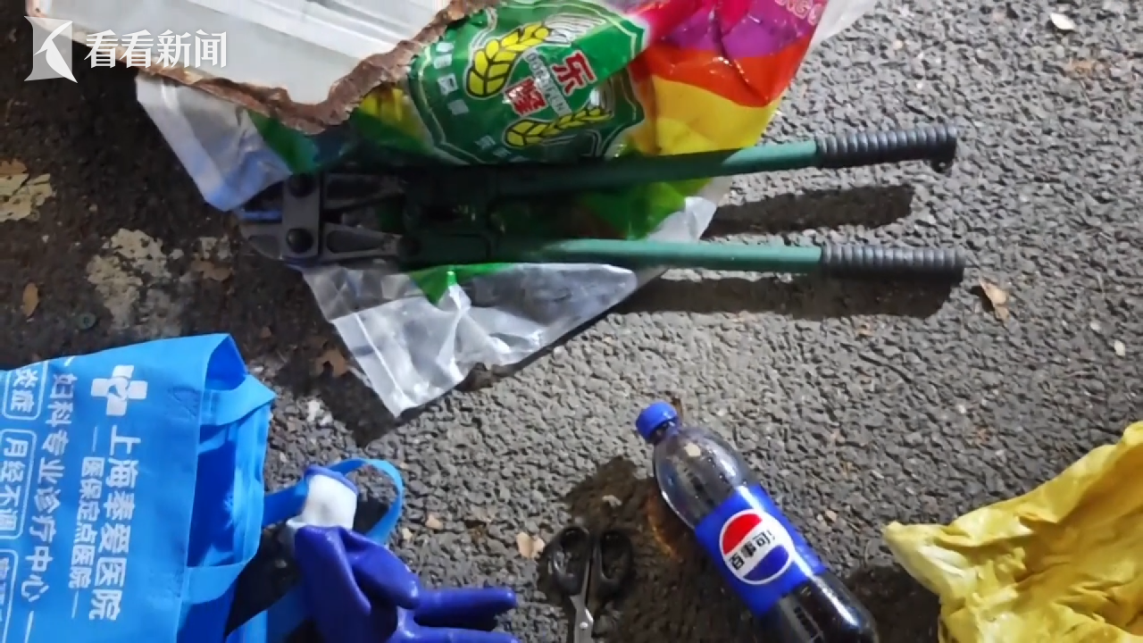 民警到达现场发现剩下一片狼藉,嫌疑人在被撬开的防盗窗外丢弃了刀具、手套、大力钳等作案工具。除了这些,警方还在地上发现了一个掉落的绿色纽扣和半瓶可乐。