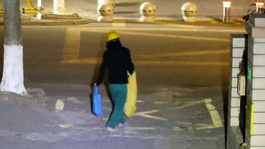案发前半小时,在距离金店800米外的洪庙小学门口,一名身穿黑色上衣,绿色长裤,拎着蛇皮袋的男子,在监控下一闪而过。十分神奇的是,这个人走路是倒退着走的。民警分析,很可能是男子为了避免自己的形象正面暴露在镜头下面,说明此人有很大的嫌疑。