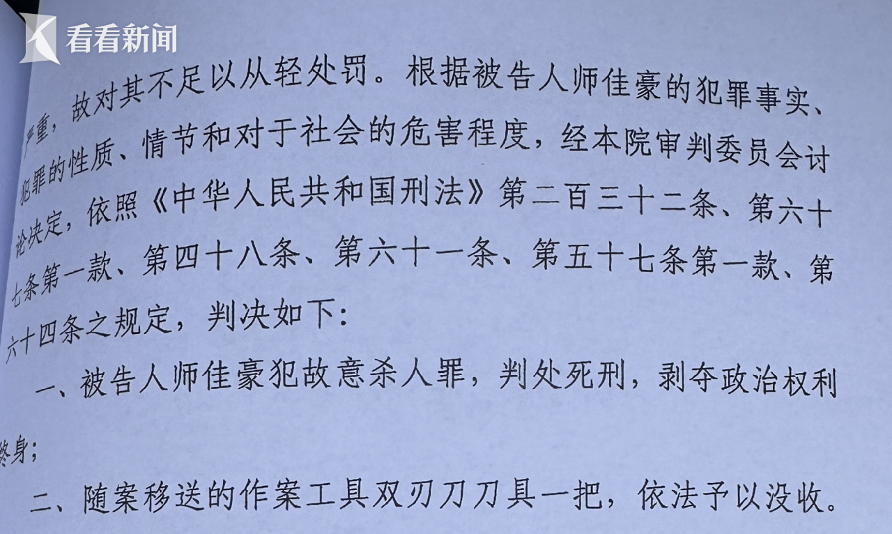 判决书显示,法庭认为被告人师佳豪事后未采取任何施救措施,其行为符合故意杀人罪的构成要件,师某某杀人意志坚决犯罪动机极其卑劣主观恶性极大、杀人手段特别残忍、犯罪后果特别严重,犯罪情节特别恶劣、社会危害性极大、实属罪行极其严重,故对其不足以从轻处罚。