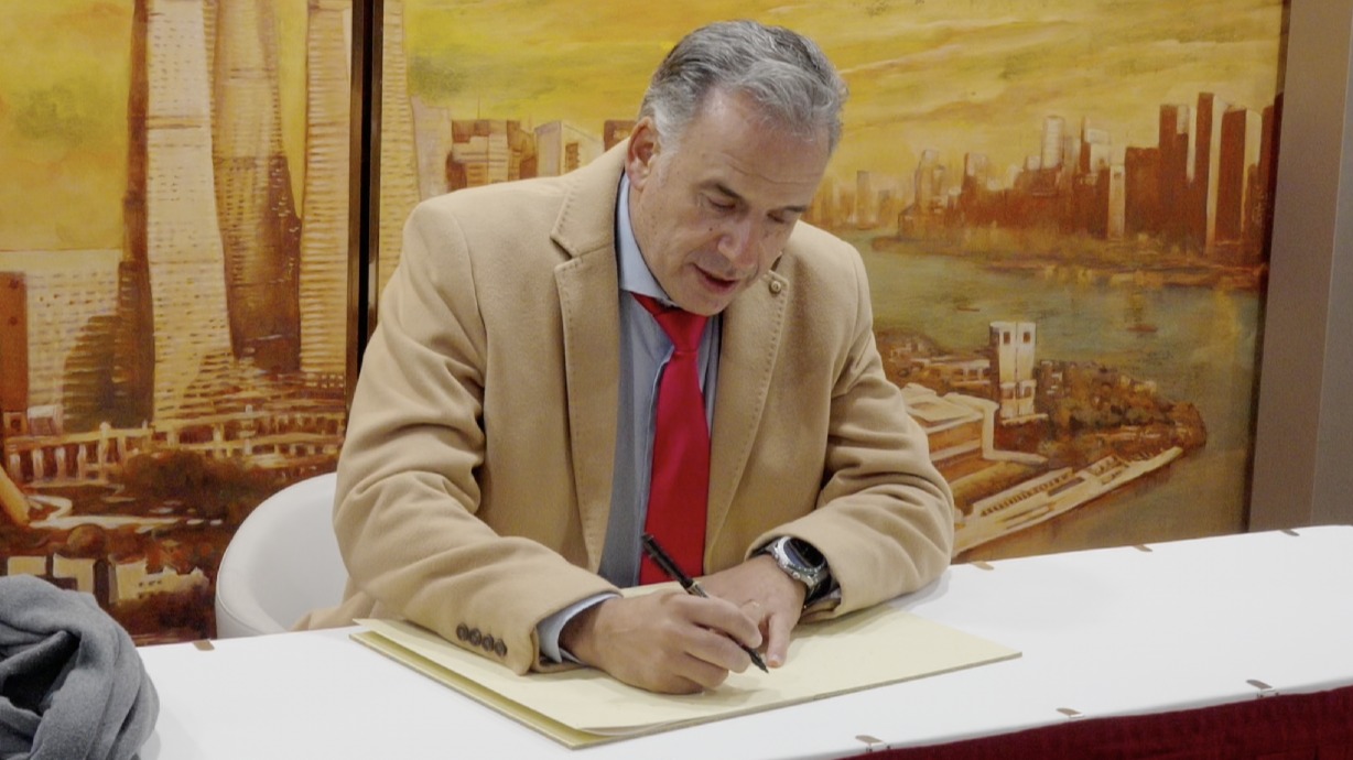 2月5日晚,乌拉圭总统奥尔西坐船夜游黄浦江。船上,他好奇地拿起东方明珠水瓶,并在甲板上看到了“原版”东方明珠。