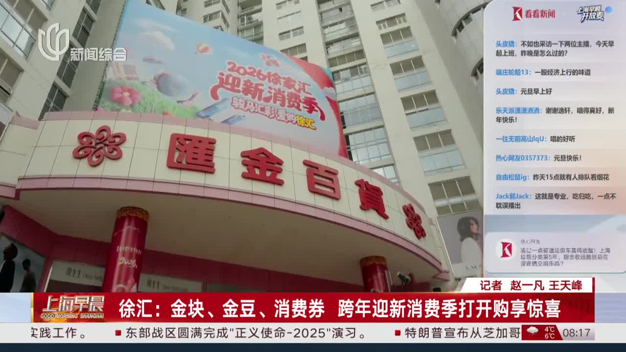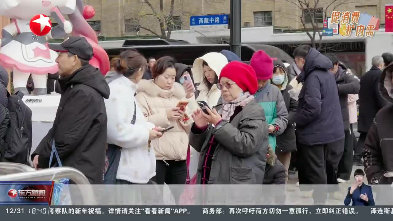 除了南京路,徐汇等区域的商场也同步发力,推出满额抽金条、送金豆等活动,现场人气高涨。商家表示,希望通过多样化促销,把跨年的消费热度延续到春节。