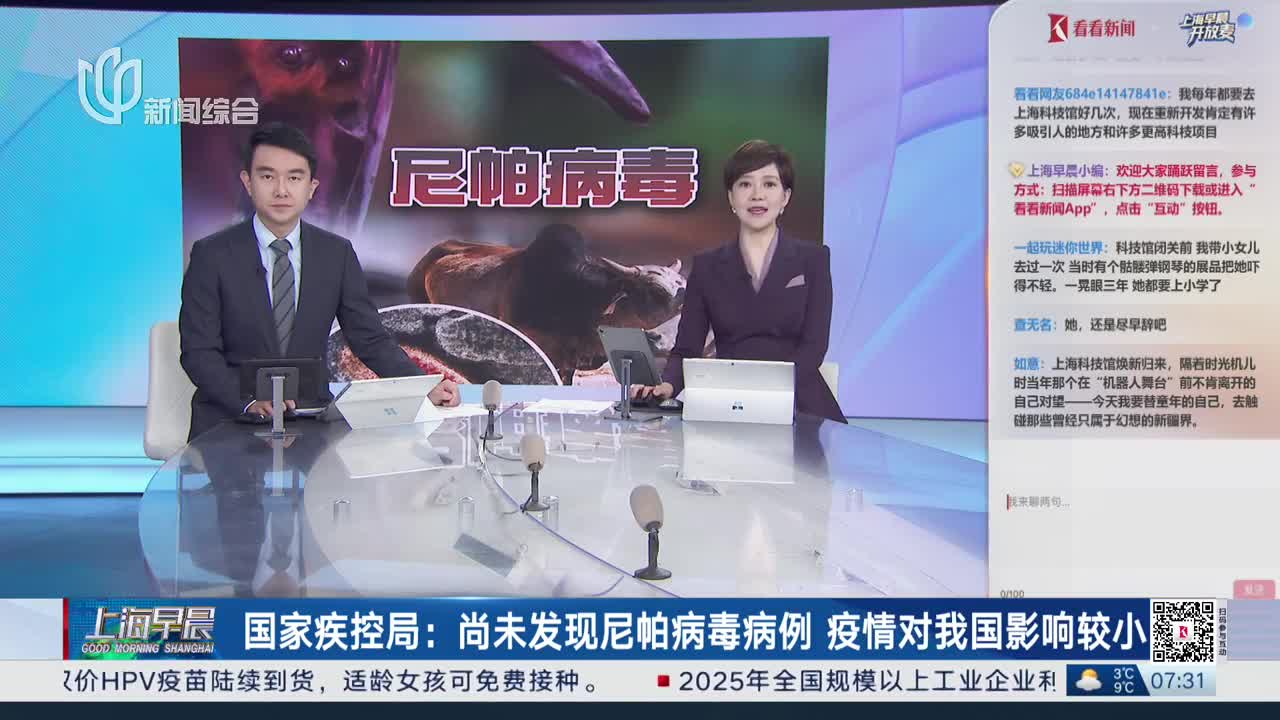 国家疾控局:尚未发现尼帕病毒病例 疫情对我国影响较小