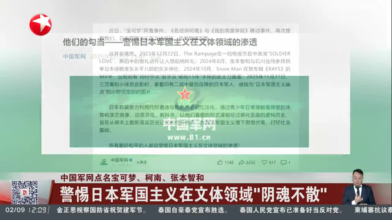 中国军网2月8日发布文章《他们的勾当——警惕日本军国主义在文体领域的渗透》,全文如下: