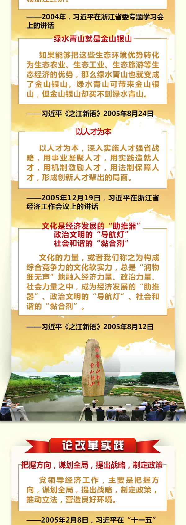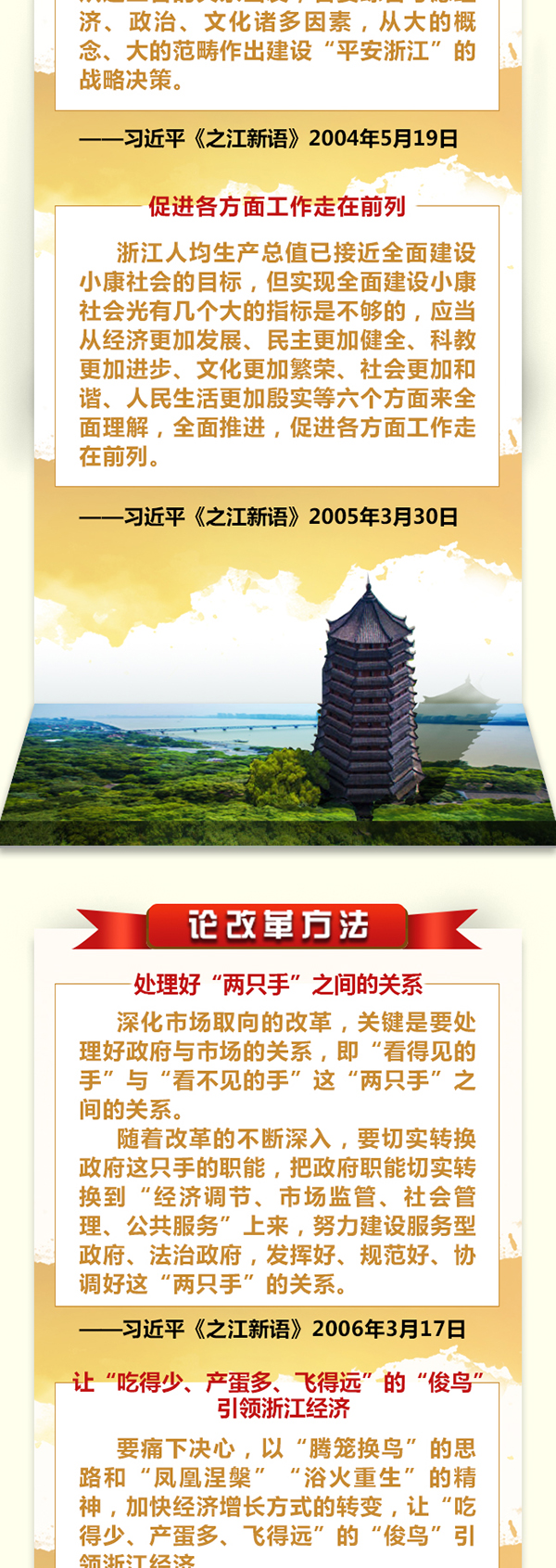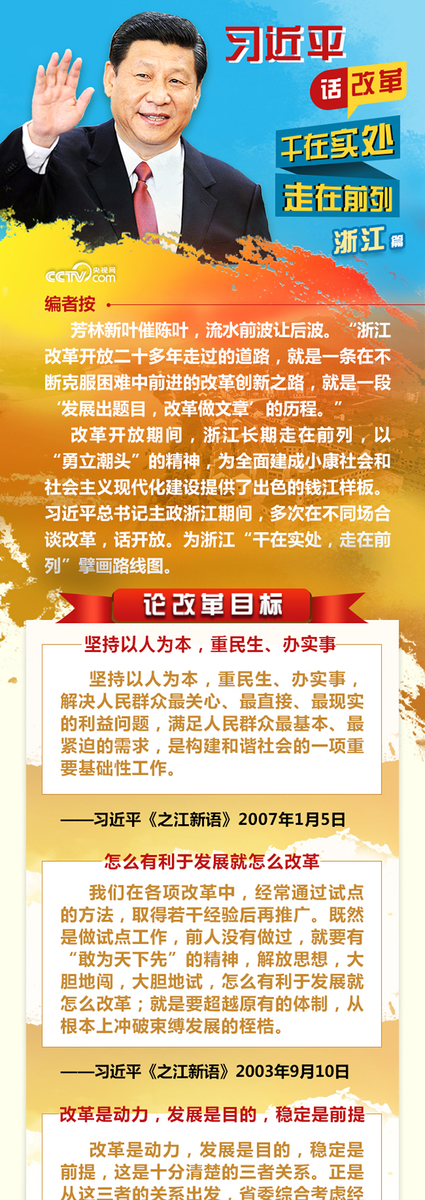 如今,浙江经济转型升级步入快车道,城乡统筹、区域协调步伐加快,老百姓获得感不断增强。这是浙江在改革开放40年不断探索中留下的坚实足迹,更是给予我们的深刻启示。新时代我们更要坚定不移将改革开放进行到底,以开拓者的精神、实干家的本色,继续深化改革、扩大开放。