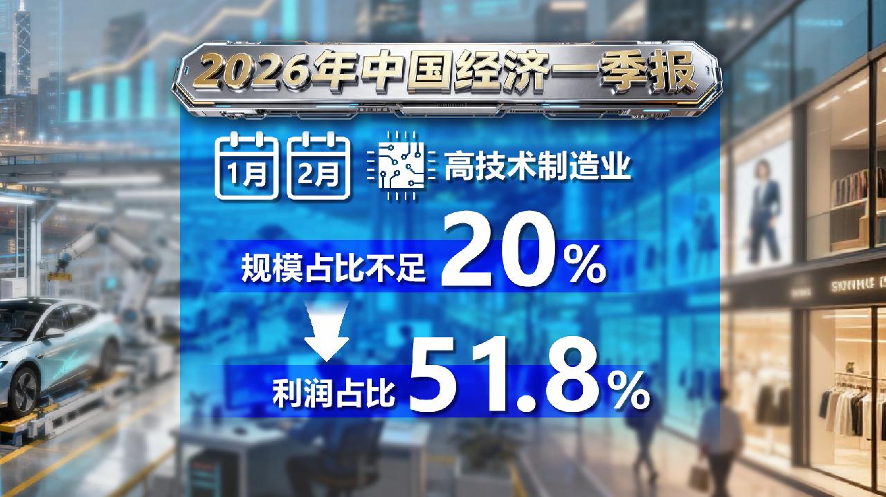 而高技术制造业则成为了利润担当,今年前两个月,规上工业占比不足20%的高技术制造业,对整个工业企业利润的贡献率达到了51.8%。