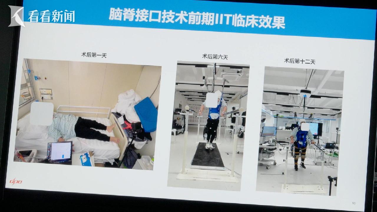 看看新闻记Knews者在现场看到,一名瘫痪病人在术后第12天能行走。曾经,这类被判定为A级的患者,在运动和感觉神经受到严重损伤后,要想重新站立行走,几乎是异想天开。在这项科研临床试验中,四例患者全部都在术后七天,就打通大脑的意图和脊髓的刺激。