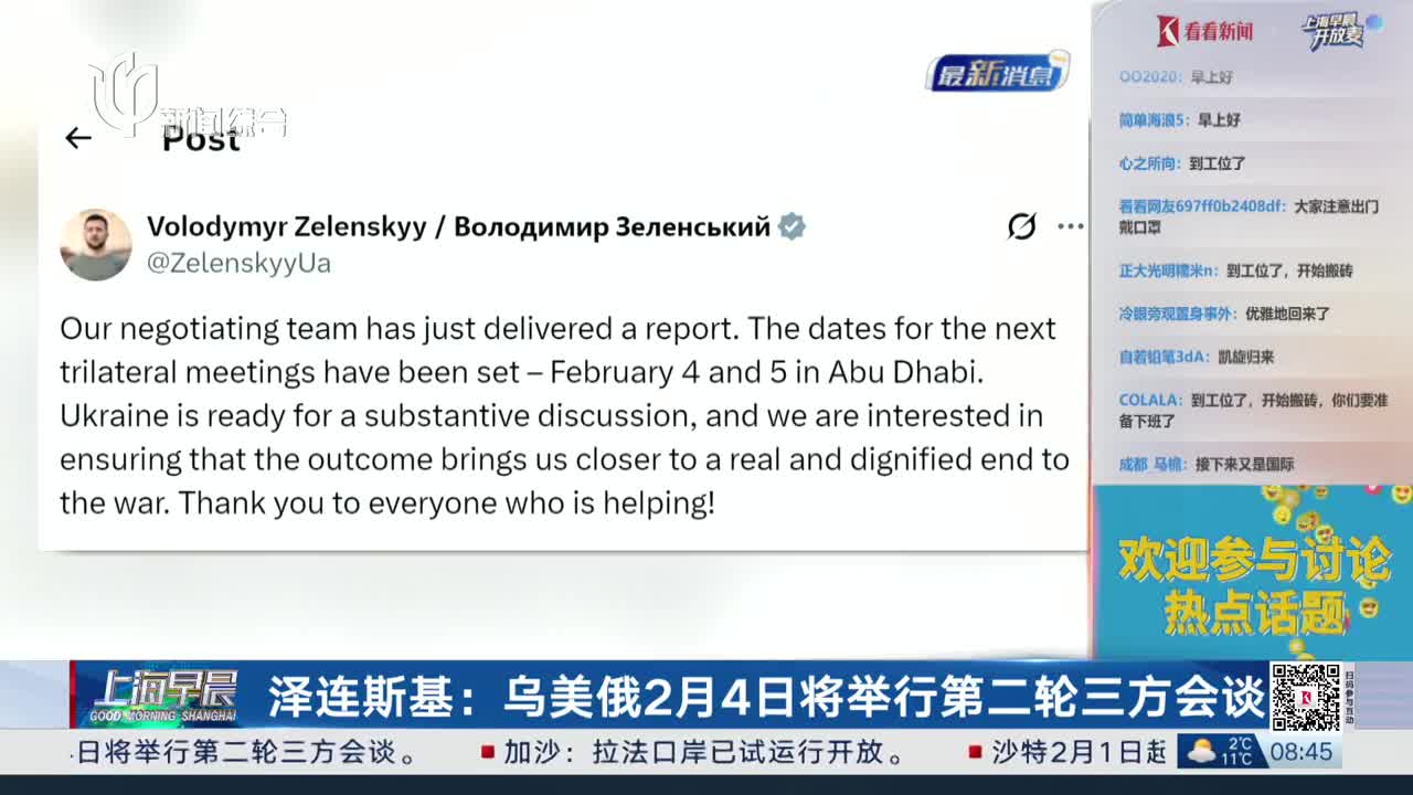 泽连斯基:乌美俄2月4日将举行第二轮三方会谈