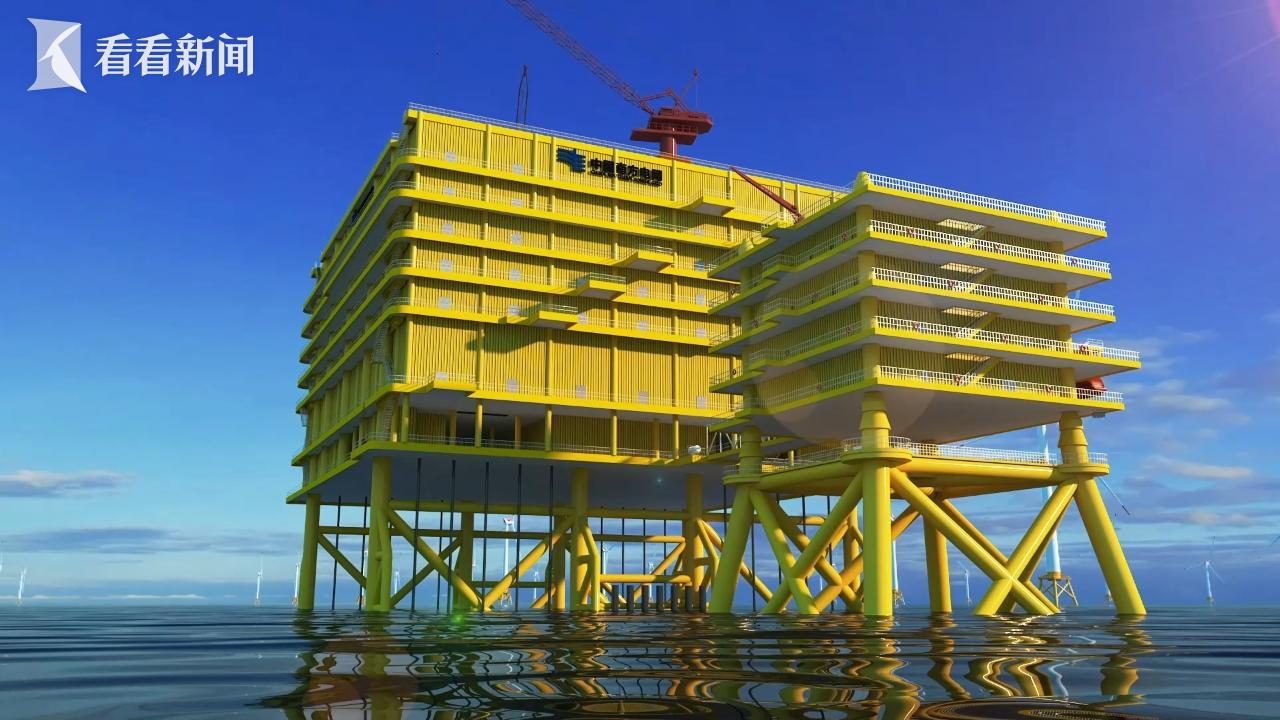 在建的三山岛工程海上换流站屹立于江苏南通的振华重装码头,上部模块为七层建筑,平面尺寸约7000平方米,相当于一个足球场大小;高约43米,约等同于14层住宅楼高。该项目采用模块化分层拼装建造工艺,建造过程与设备进场同步进行,对供应链和生产制造管控水平要求极高。此外,在建设模式上,项目创新采用“陆上总装、整体运输、浮托安装”方案,可大幅缩短陆上建造周期,减少海上作业风险,相较于传统建造模式效率提升40%以上。