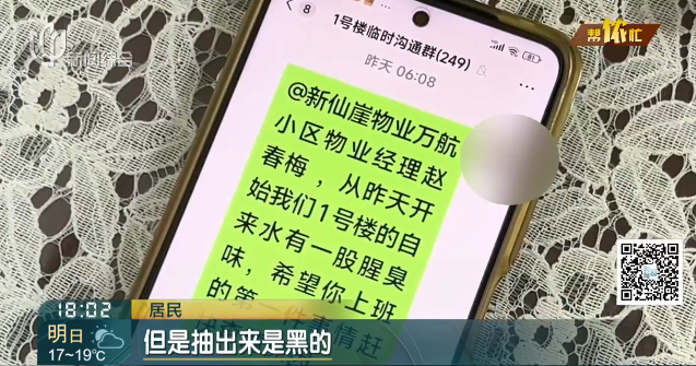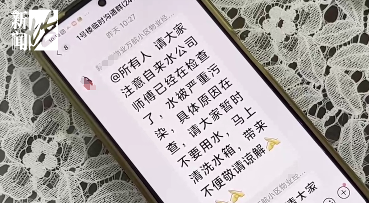 水务公司表示,昨天(10月19日)上午,得知情况后,他们立即对污染水池水箱进行了紧急清洗,并对水质进行了检测,报告将在48小时后出具。