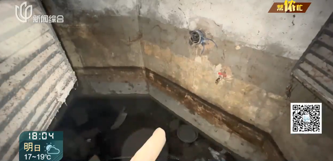 我们这个1号楼地下排水处只有一个地方,就是我们水池旁边的污水的排水井。我们判断集水井的水位到达了我们溢水孔的高度,有污水流入水池,那么水池通过水泵把这个水打到水箱,然后供到居民家里,所以有居民反映水有异味。