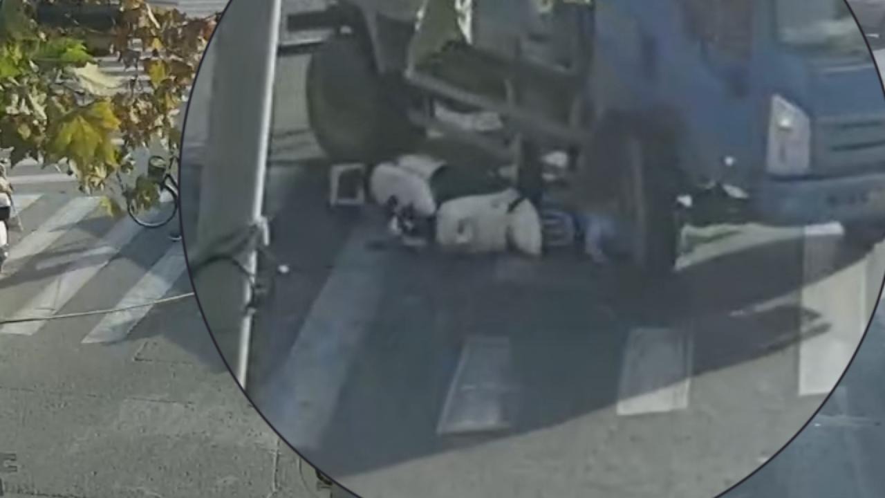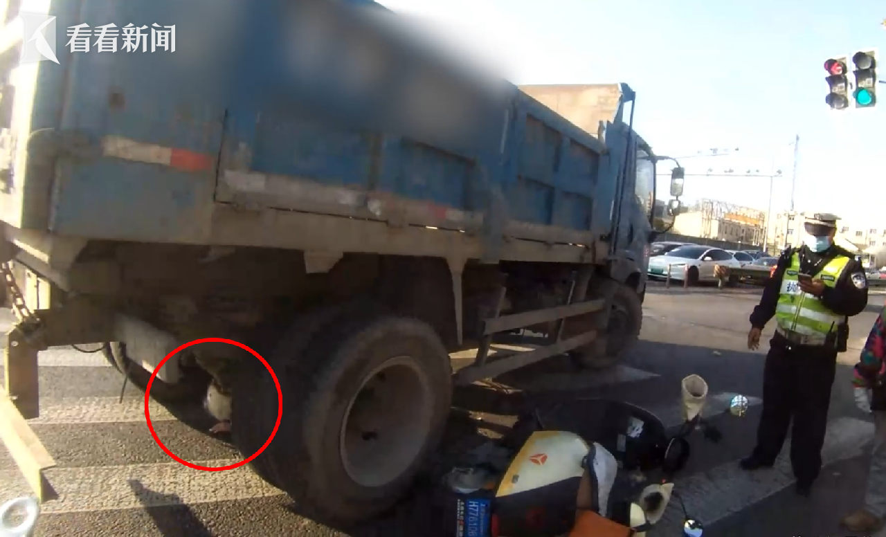 近日早高峰,闵行区漕宝路虹莘路路口传来一阵刺耳的刹车与碰撞声,一辆右转货车与直行的电动自行车发生碰撞。转瞬之间,货车轮胎从电动自行车驾驶人头部碾过,所幸其当时正确佩戴安全头盔且货车处于空车状态而“死里逃生”。