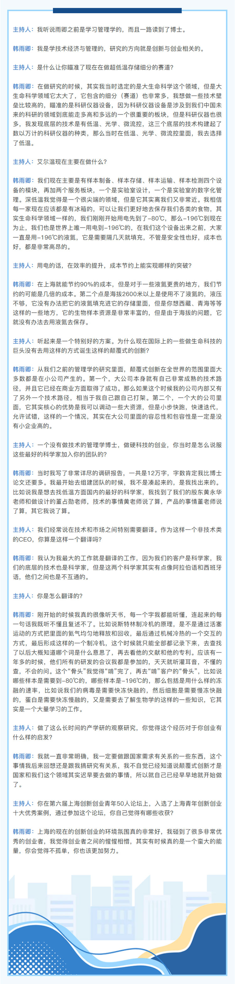 今天,来看上海艾尔温生命科技有限公司董事长兼首席执行官韩雨卿的故事。