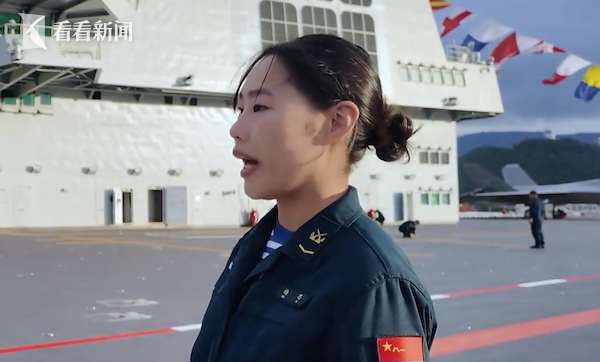 梅思表示:“我们信号兵承担着挂旗和吹号的任务。上面的欢迎旗组是我们信号班的人悬挂,等到8点以后,我们还会悬挂国旗。这是我接的第一艘舰,感觉到非常自豪和激动,非常期待这一天的到来。”