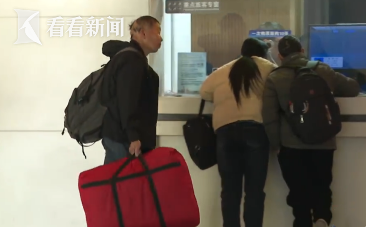 距离春运启动还有一周多,铁路上海站的售票大厅内,提着大包小包、提前返乡过年的旅客几乎没断过。