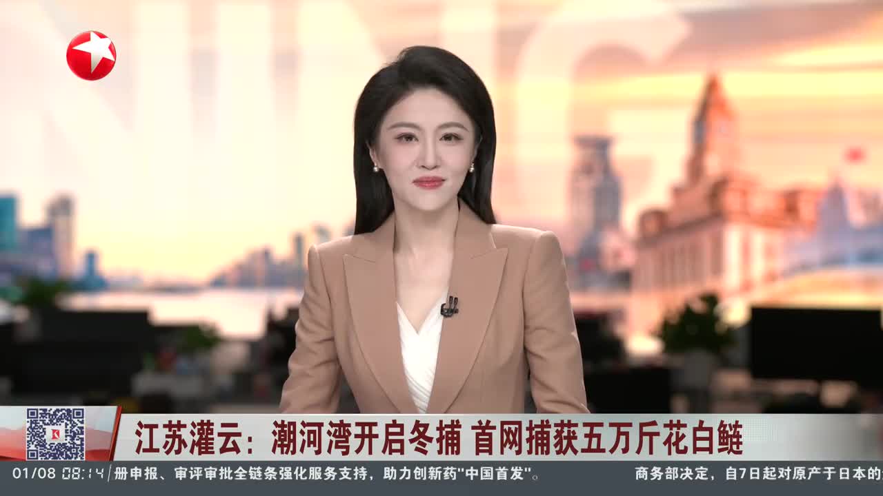江苏灌云:潮河湾开启冬捕 首网捕获五万斤花白鲢