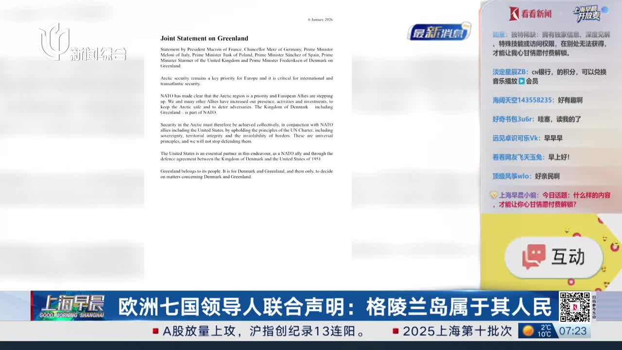 欧洲七国领导人联合声明:格陵兰岛属于其人民