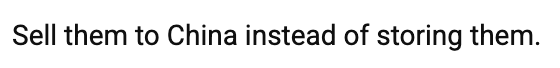 美国网友留言:"把它们销往中国,而不是储藏。"