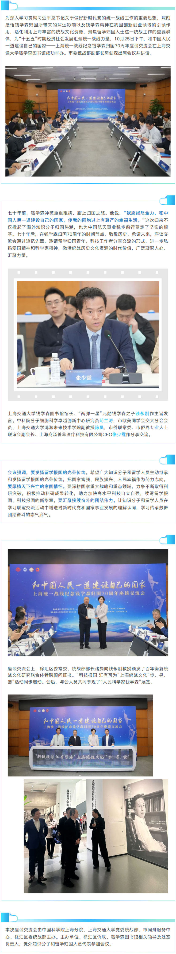 “和中国人民一道建设自己的国家” 上海统一战线纪念钱学森归国70周年座谈交流会举办