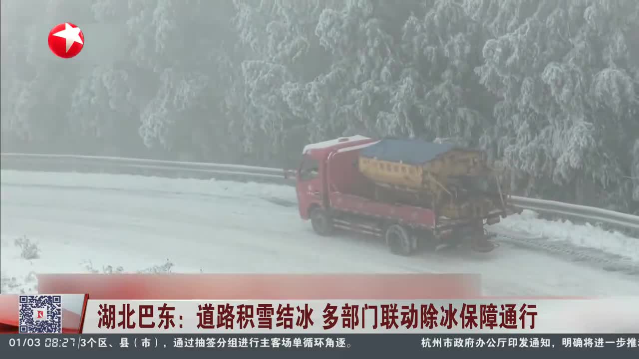 湖北巴东:道路积雪结冰 多部门联动除冰保障通行