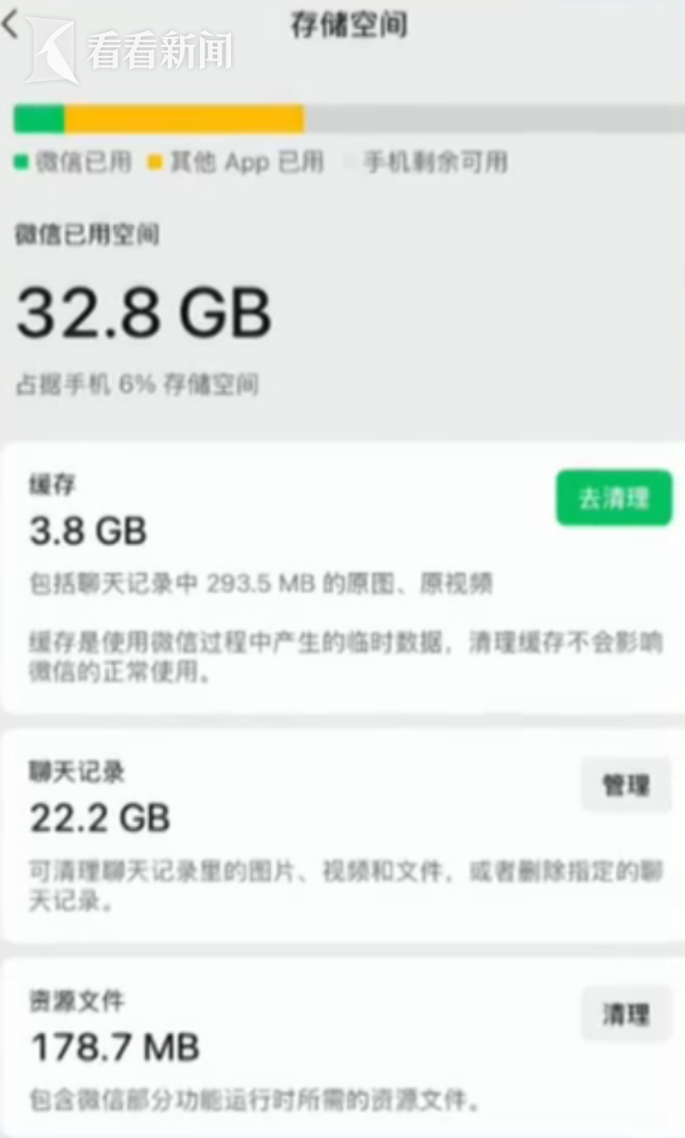 但也有人发现,即使删除了聊天记录,微信占用的存储空间可能不会马上减少。对此,微信解释说,为了不打断用户正常聊天体验,它们采用的是异步删除机制。简单说,真正的清理操作,并不是立即执行,而是会在手机空闲时在后台完成。
