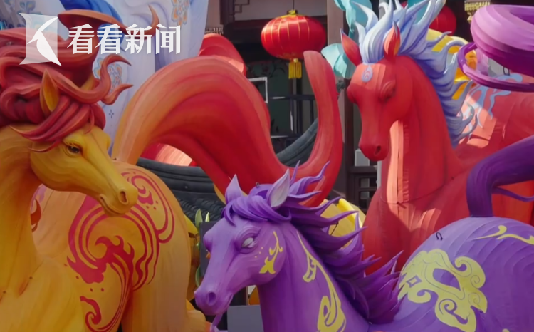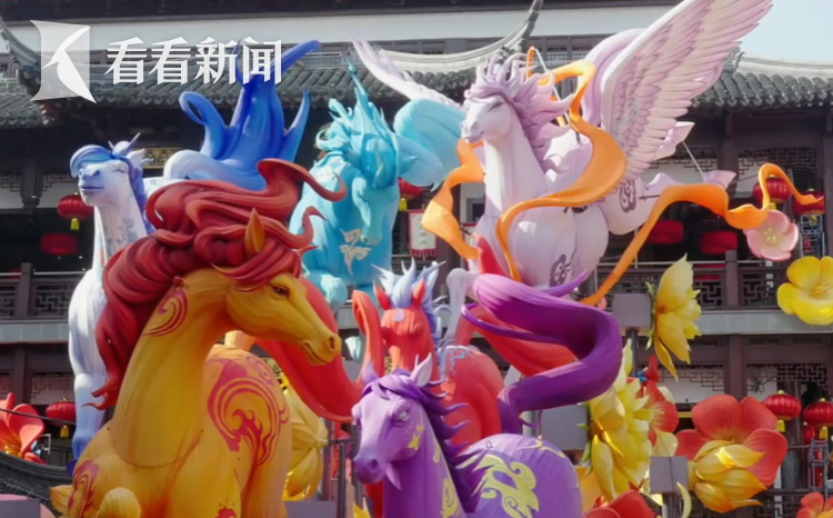 每年的豫园灯会,最受关注的莫过于主题生肖灯组。在中心广场上,游客围着马年的主题灯组“骏驰九州,步步生花”不停得拍拍拍。