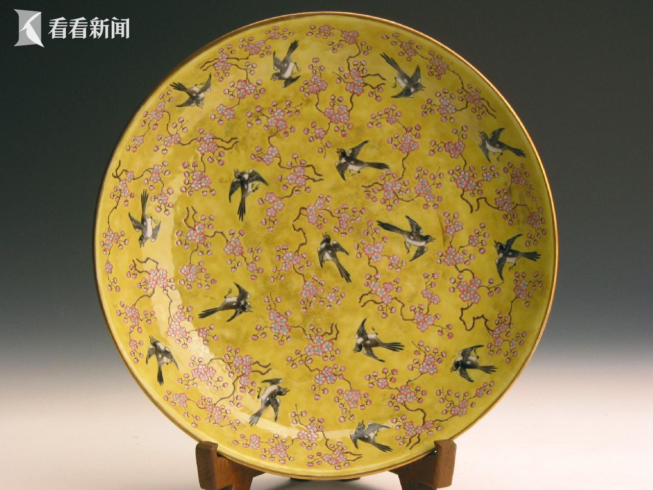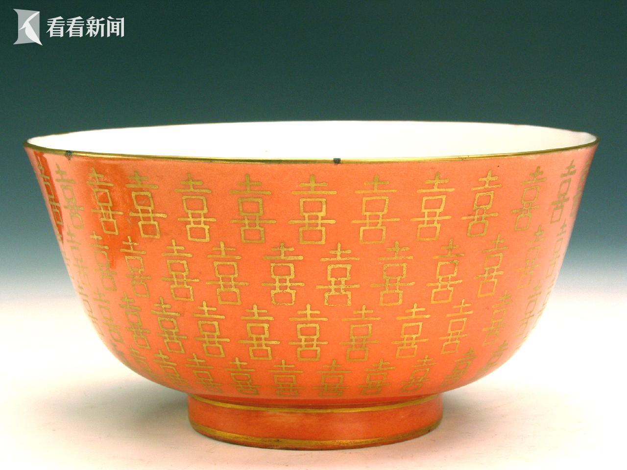 “图必有意,意必吉祥。”清代寓意吉祥的载体丰富多样,范围不断延展,从延年益寿、多子多福到求吉纳福、平安喜乐。同治十一年(1872)同治皇帝大婚。为筹备这次大婚典礼,同治六年(1867)朝廷即命景福烧造大婚用瓷,共14份,9项花色,合计1万余件。本次展出的粉彩黄地梅鹊大碗、羹匙、小碗、盘,粉彩红地喜字盘、大碗等,均为同治皇帝大婚用瓷。