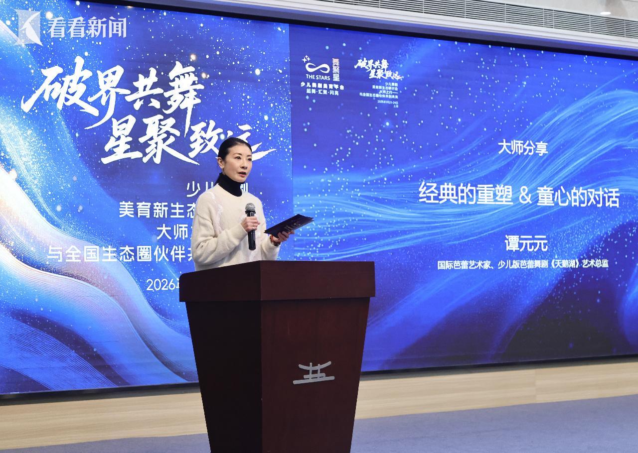 1月23日,“大师之约:少儿舞剧美育新生态研讨会”在上海大剧院举行,会上发布,由谭元元、朱洁静分别担任艺术总监的少儿版芭蕾舞剧《天鹅湖》、大型舞蹈诗《我的祖国》, 两部作品将于7月6日至15日在“2026上海青少年国际舞蹈展演”首演,分别亮相上海大剧院、上海国际舞蹈中心大剧场,并将于今年8月走出国门,亮相澳大利亚悉尼,让中国孩子站上世界舞台。