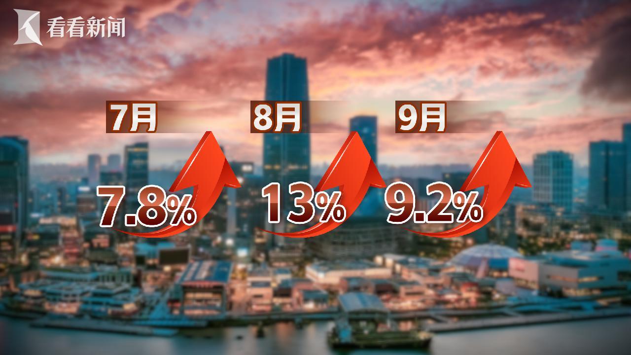 上海7月到9月分别增长7.8%、13%和9.2%,因此推高了社零总量,让前三季度社零增速较上半年直接提高了2.6个百分点。