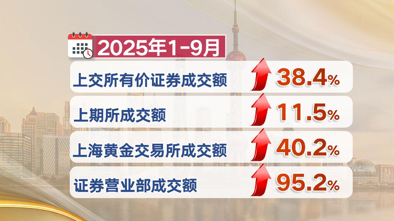 金融业无疑是第三产业的亮点之一。前三季度,上交所有价证券成交额增长近四成,上期所成交额增长超11%,上海黄金交易所成交额增长超4成。股市方面的交易尤为活跃。前三季度上海市证券营业部成交额同比几乎翻了个倍。